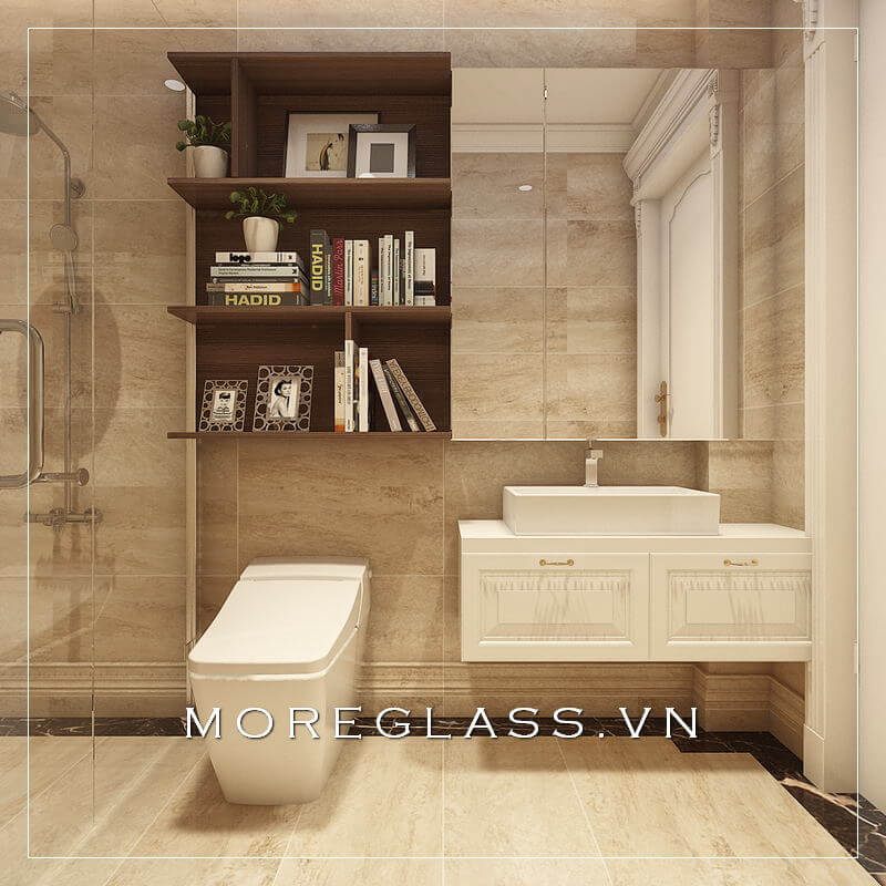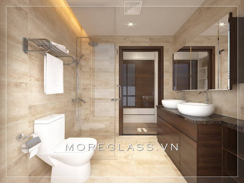 Mẫu thiết kế nhà tắm đầy đủ tiện nghi, bao gồm phòng tắm kính cường lực cao cấp, đã được hiển thị.