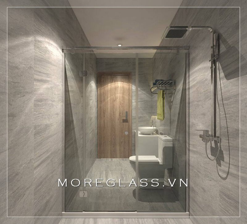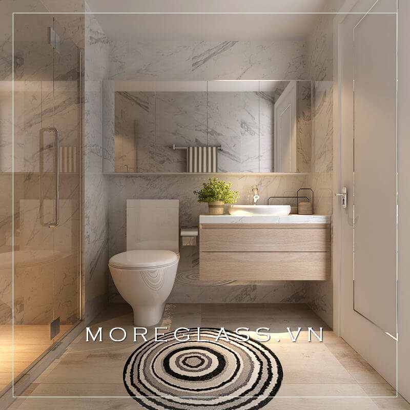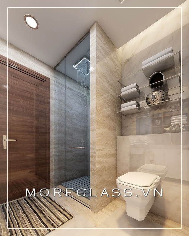 Mẫu thiết kế nhà tắm kính cao cấp với kính cường lực trong suốt giúp tạo nên vẻ đẹp tinh tế, sang trọng mà không làm cho phòng tắm nhỏ cảm giác bí bách.