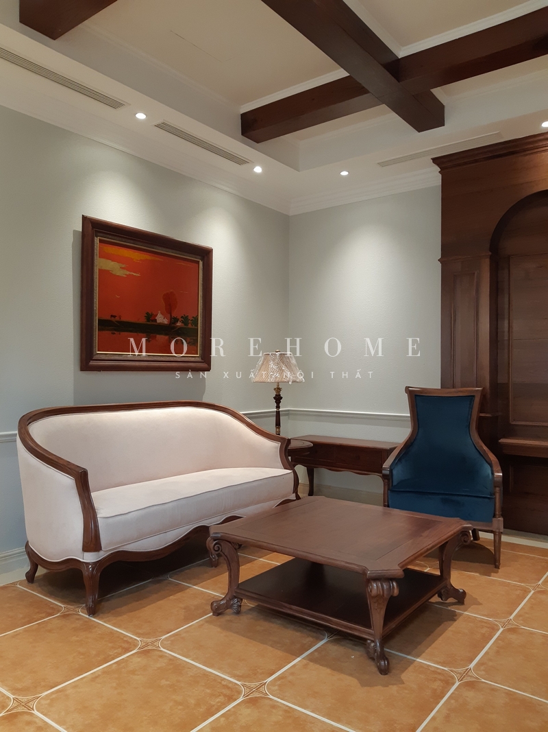 Không gian phòng khách là nơi quan trọng để đón tiếp khách tới chơi nhà hay tu họp trò chuyện cùng những thành viên trong gia đình. Bộ bàn ghế sofa gỗ óc chó bọc nệm tân cổ điển là một trong những nội thất quan trọng góp phần tạo nên một không gian ấm cúng và thân thiện.