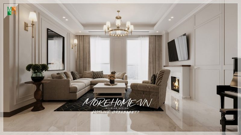 Ghế sofa sáng màu sang trọng được thiết kế để tạo nên vẻ tinh tế hiện đại cho phòng khách căn hộ cao cấp.