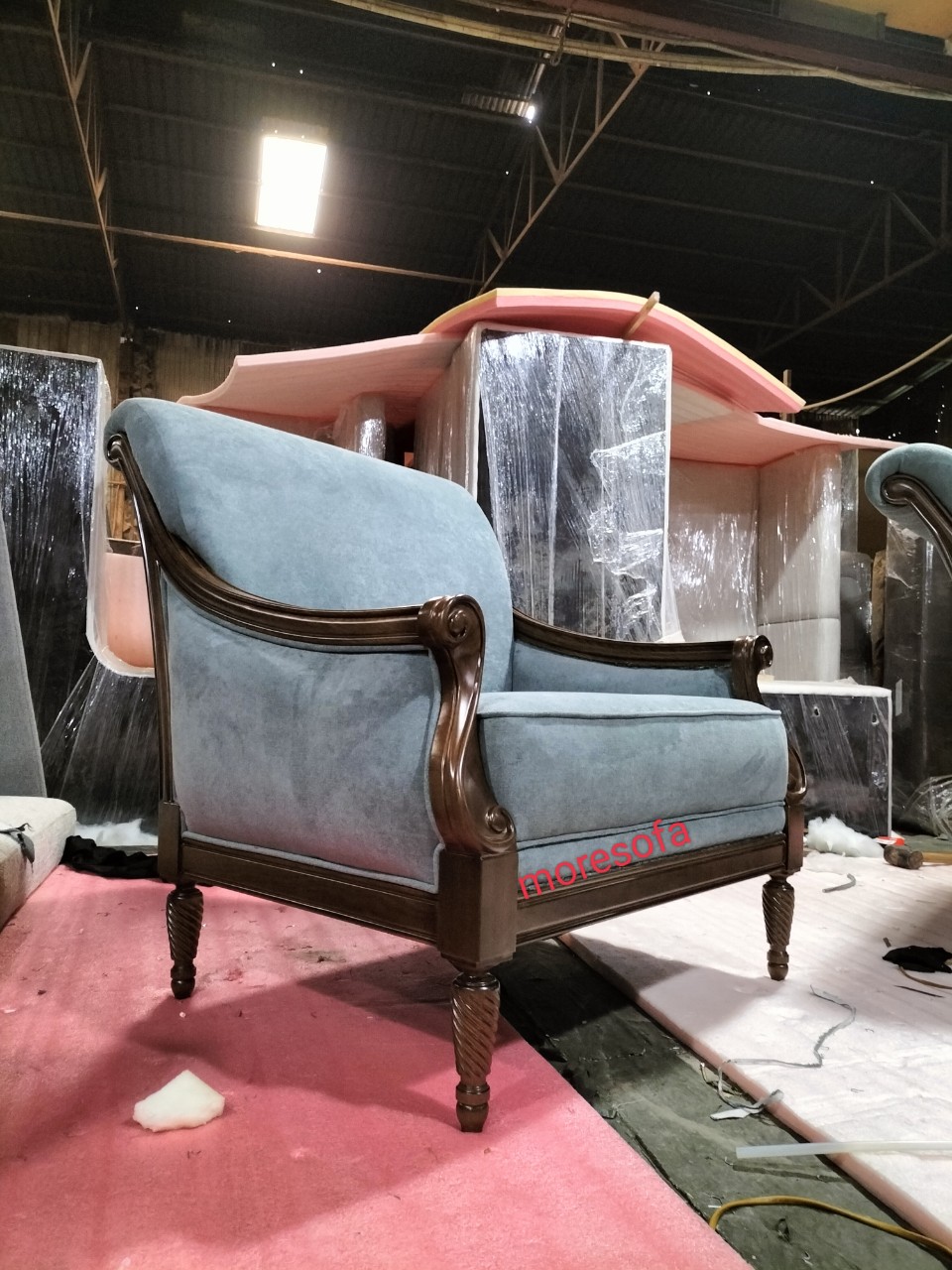 Xưởng sản xuất nội thất Morehome giới thiệu tới khách hàng mẫu ghế sofa đơn khung gỗ bọc nệm tân cổ điển với chi tiết sắc nét, chạm khắc tỉ mỉ cầu kì mang tới một sản phẩm chất lượng và thẩm mỹ cao